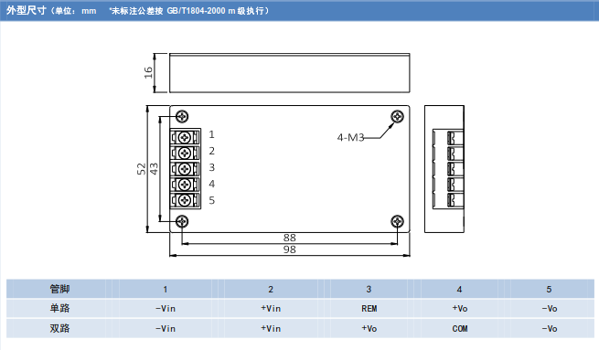 遥控特性(负逻辑,尾缀/P) 关断时输入电流     10 mA 注 2