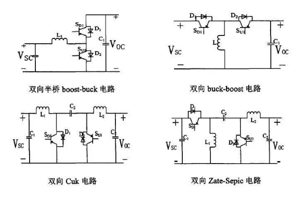 什么是电气隔离? 电气隔离,就是将电源与用电回路作电气上的隔离,即将用电的分支电路与整个电气系统隔离,使之成为一个在电气上被隔离的、独立的不接地安全系统,以防止在裸露导体故障带电情况下发生间接触电危险。实现电气隔离以后,两个电路之间没有电气上的直接联系。即,两个电路之间是相互绝缘的。同时还要保证两个电路维持能量传输的关系。电气隔离的作用主要是减少两个不同的电路之间的相互干扰,降低噪声。 非隔离双向DCDC,结构比较简单,每个部件都是直接相连,没有额外的能量损失,工作效率比较髙。对升压侧的电容要求比较高。主要的非隔离DCDC电路结构有双向半桥boost-buck电路,双向buck-boost电路,双向buck电路,双向Zate-Sepic电路,如下图所示。 隔离型双向DCDC,在非隔离型双向DCDC转换器的基础上加上一个高频变压器就构成了隔离型双向DCDC转换器,高频变压器两侧的电路拓扑可以是全桥式、半桥式、推挽式等等。这几种隔离型的双向DCDC转换器,采用了更多的功率开关,电压变比大,带电气隔离等优点。但是这类DCDC转换器结构复杂,成本也相对较高,转换器的损耗高,低频时会导致隔离变压器铁芯饱和,损耗会进一步增加。因此,非隔离型双向DCDC转换器比隔离型在电动汽车上运用更具有优势。 当能量由高皮侧流向低压侧时,双向DCDC转换器工作在BUCK模式;能量由低压侧流向高压侧时,双向DCDC转换器工作在BOOST工作模式。 主电路 又叫做功率模块,是整个DCDC的主体。一个典型的全桥型 DCDC 变换器主电路拓扑如下图所示。 上图中,Vin为输入电压,需要通过DCDC回路,在输出端得到一个需要的输出电压。原边开关电路,将输入电流调制成矩形波,这个过程主要依靠控制器调制特定占空比的PWM波,用以驱动四个开关管按照既定的顺序和时间开闭,从而实现电流逆变过程。原边输入电压可以通过占空比调节,占空比增加输出电压也增加,占空比减小输出电压减小。频率则可以通过调节开关频率调节。T1位变压器,变比你n。变压器既可以实现电气隔离,又可以起到电压调节的作用。一个固定的原边线圈匝数,副边改变匝数,即可得到不同的电压等级。变压器的输入,是经过左侧全桥电路逆变得到的脉冲矩形波,传递到变压器的副边,得到的是另一个电压幅值的交流正弦波。经过DR1和DR2整流以后,再经由Cf和Rl滤波处理,得到直流电,提供给输出端。 驱动模块 对于控制芯片输出的四路 PWM 驱动信号来说,并不能直接驱动四个功率开关管。所以,一般来说,开关电源是需要配套一个驱动电路来驱动功率开关管。驱动电路种类很多,主要由以下三种: 直接耦合型:控制芯片的每一路输出 PWM 驱动信号经过由两个三极管组成的放大电路来驱动功率开关管。此种方法无法实现控制部分与主电路的隔离。 脉冲变压器耦合型驱动电路:此电路是在直接耦合型的基础上加上了一个脉冲变压器,实现了控制电路与主电路的隔离。但是这种结构的缺点是,涉及到变压器的设计、制作等方面,比较复杂。 驱动芯片的驱动电路:为了更加方便地来驱动功率开关管,很多公司研制出驱动芯片,驱动芯片可以输出较大的功率,驱动开关管,而且随着芯片的小型化发展,现在的驱动芯片体积非常小,有各种封装形式。利用驱动芯片对功率开关管驱动,这种方法比较简单,但是控制电路与主电路仍然没有实现隔离。 控制模块 主电路的反馈主要有三种控制模式:电压控制模式,峰值电流控制模式,平均电流控制模式。 电压控制模式:属于电压反馈,利用输出电压进行校正,是单环反馈模式,输出电压采样与输入基准电压比较,得到的输出信号与一锯齿波电压比较,输出 PWM波信号。电压控制模式设计以和运用都比较简单,但是电压控制模式没有对输出电流进行控制,有一定的误差存在,并且输出电压先经过电感以及电容的滤波,使得动态响应比较差。 峰值电流控制模式:峰值电流控制模式与电压控制模式的区别在于,峰值电流控制模式中,把电压控制模式的那一路锯齿波形,转换成了电感的瞬时电流与一个小锯齿波的叠加。但是电感的瞬时电流并不能表示平均电流的情况。 平均电流控制模式:属于双环控制方式,电压环的输出信号作为基准电流与电感电流的反馈信号比较。设置误差放大器,可以平均化输入电流的一些高频分量,输出的经过平均化处理的电流,再与芯片产生的锯齿波进行比较,输出合适的 PWM 波形。 电感电流和电容电压因此需要对两个变量都要进行PID整定,一个典型的控制流程如下图所示。控制模块是由两个PID控制器组成,分别是电压控制控制外环和电流控制内环,在流程图中给出一个参考电压,设计合理的参数,就可以很快速的达到控制系统的目的。 相比三种控制方式,平均电流的控制方式不限制占空比,对输出电压和电感电流均进行反馈,有比较好的控制效果。采用平均电流控制方式进行反馈电路的设计时,把电流环是看作电压环的一部分。 DCDC中的硬开关与软开关有何区别? 硬开关和软开关是针对开关管来讲的。 硬开关是不管开关管(DS极或CE极)上的电压或电流,强行turn on或turn off开关管。当开关管上(DS极或CE极)电压及电流较大时开关管动作,由于开关管状态间的切换(由开到关,或由关到开)需要一定的时间,这会造成在开关管状态间切换的某一段时间内电压和电流会有一个交越区域,这个交越造成的开